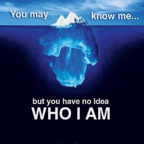 I find it amusing that following my funeral, which I plan to be a roast where my family and friends who care to join in can share anecdotes, there will probably be many exclamations of “She did what . . . ?” or “Why didn’t I know that about her . . .” or even “Are we talking about the same person?” There’s a quote that I will share below, which I love, because I only share with each person that part of me I wish them to know. Like the icebergs that float in the ocean, there is much more to me than what I show.
