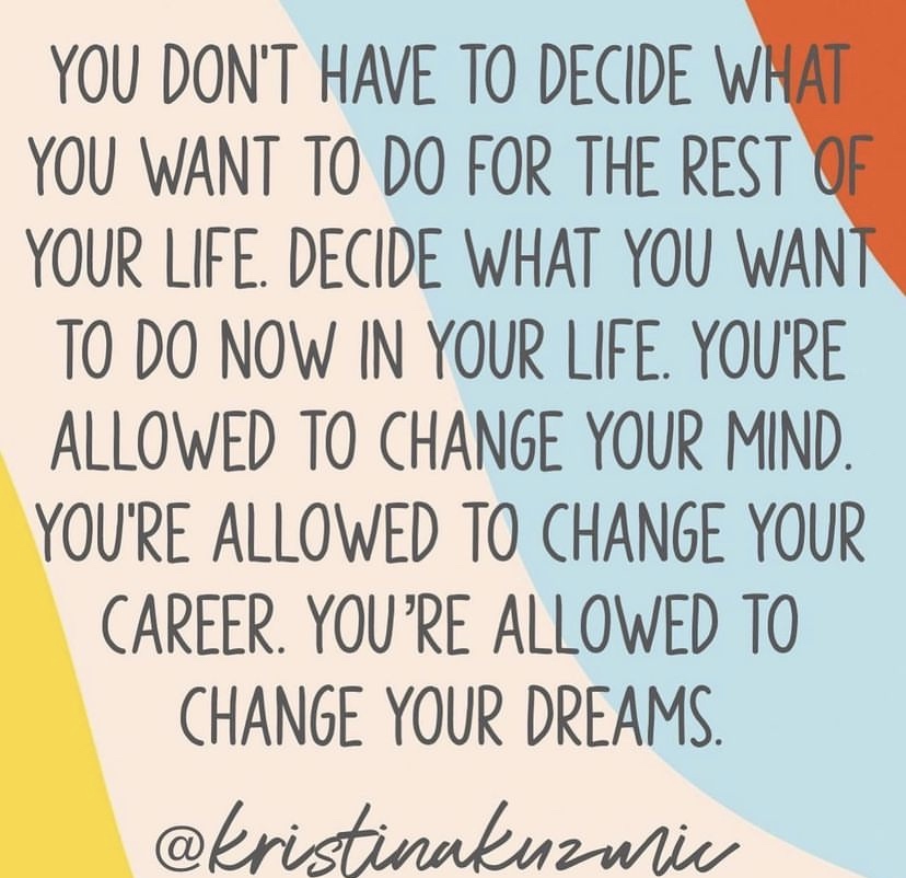 People change based on circumstances, experiences and individual preferences. As the photo above states, you’re allowed to change — your mind, career, or dreams, or all three!